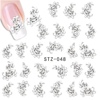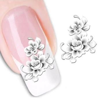 1 feuille d'autocollants pour vernis à ongles, décalcomanies pour Nail Art, transfert à l'eau, motifs de fleurs blanches, outil de manucure