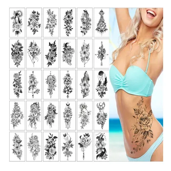 30 pièces/ensemble de Faux tatouages temporaires Sexy fleur autocollants imperméables Faux Tatouage Temporaire Femme Arte
