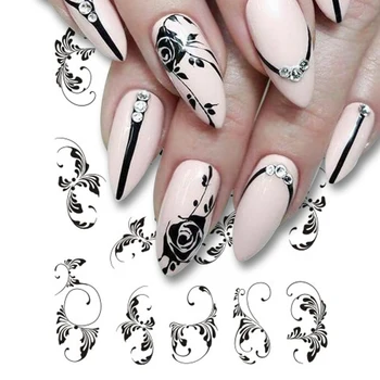Autocollant pour ongles, 1 pièce, fleur, transfert d'eau, Rose blanche, collier, bijoux, décalcomanie d'eau, enveloppe noire, conseils de manucure