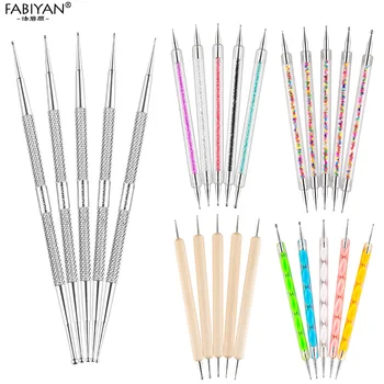 Kit d'outils de manucure, 5 pièces, vernis en gel, stylo à pois, poignée acrylique, strass, cristal, 2 faces, accessoire pour salon, outil d'esthétique