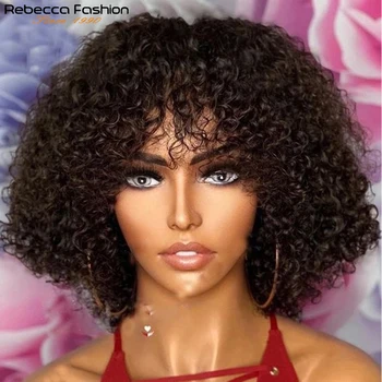 Perruque courte bouclée avec frange pour femmes, cheveux naturels, coupe Pixie Bob, couleur blond miel, à reflets