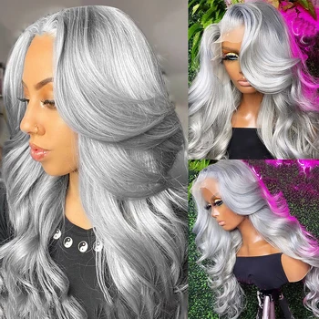 Ms Lula – perruque Lace Front Wig Body Wave brésilienne naturelle, cheveux humains, couleur gris argenté, 13×4, pre-plucked, 32 pouces, pour femmes