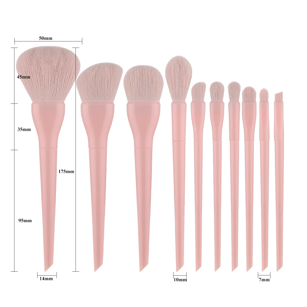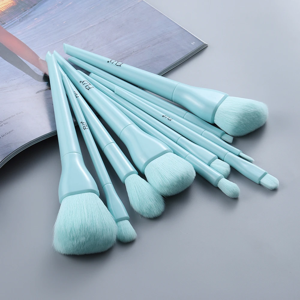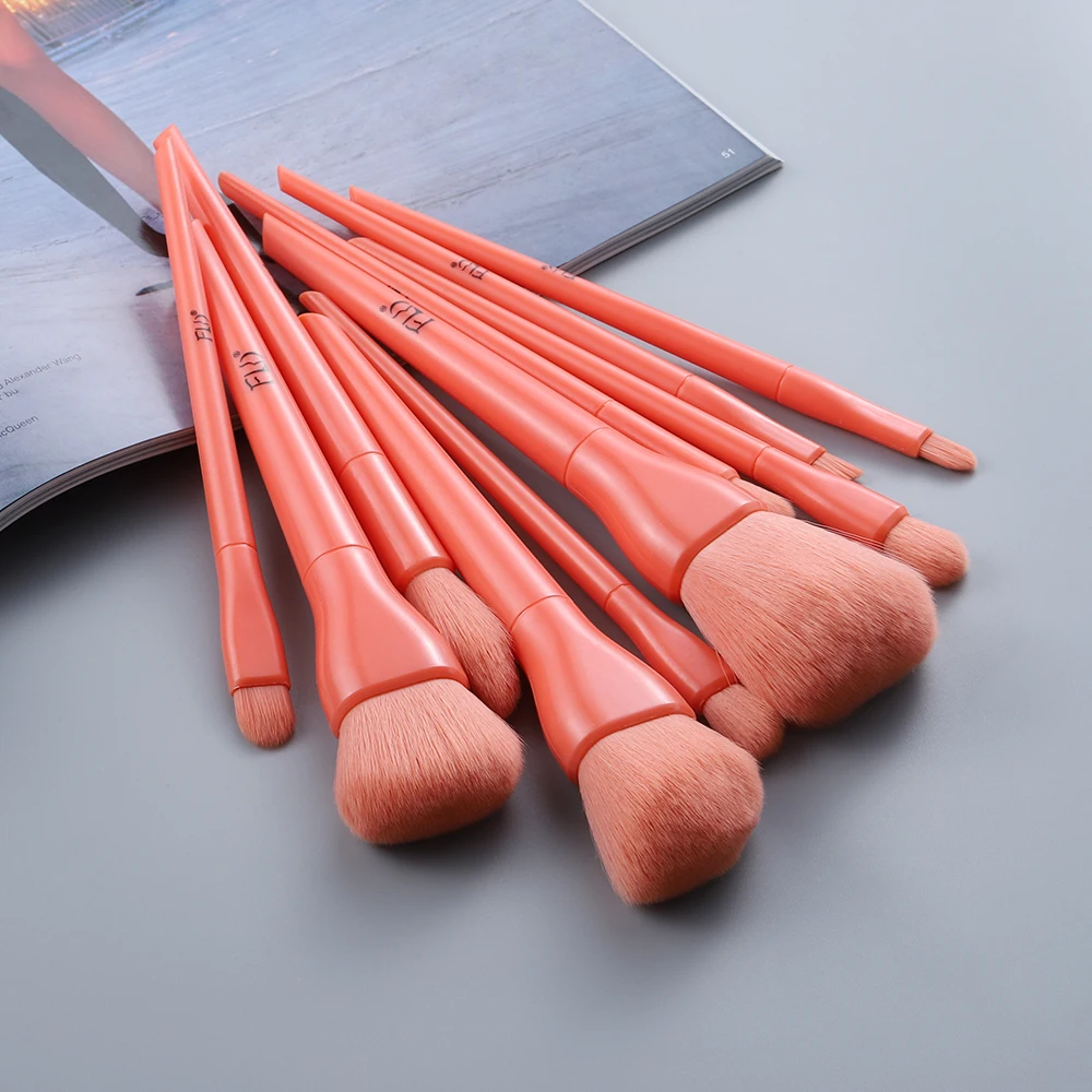 FLD 10 pièces pinceaux de maquillage colorés à cheveux naturels, fond de teint, poudre, Blush, ombre à paupières, sourcils Kabuki, ensemble de pinceaux de mélange